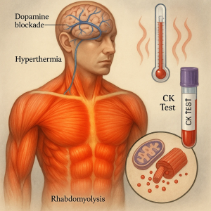 سندروم بدخیم نورولپتیک (Neuroleptic Malignant Syndrome) یکی از اورژانس‌های نادر اما کشنده در روان‌پزشکی است که اغلب پس از مصرف داروهای آنتی‌سایکوتیک (ضد‌روان‌پریشی) رخ می‌دهد. این وضعیت با تب شدید، سفتی عضلات، تغییر سطح هوشیاری و بی‌نظمی خودکار بدن شناخته می‌شود. یکی از مهم‌ترین شاخص‌های آزمایشگاهی در تشخیص و پایش این عارضه، کراتین کیناز (CK) است؛ آنزیمی که افزایش سطح آن بازتابی از تخریب گسترده سلول‌های عضلانی (رابدومیولیز) در بدن است.