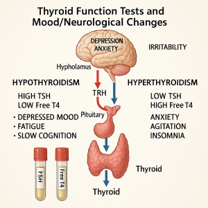 افسردگی همیشه منشأ روانی صرف ندارد. در بسیاری از بیماران، علت اصلی اختلال خلق ناگهانی، کاهش تمرکز، و احساس بی‌حالی، در واقع از اختلال عملکرد تیروئید ناشی می‌شود.  افسردگی ناشی از کم‌کاری تیروئید (Hypothyroidism) یکی از علل شناخته‌شده‌ی افسردگی ثانویه است که به‌راحتی با افسردگی اولیه اشتباه گرفته می‌شود. بررسی دقیق آزمایش‌های TSH و Free T4 می‌تواند تفاوت این دو وضعیت را آشکار کند و مسیر درمان را به‌درستی هدایت نماید.