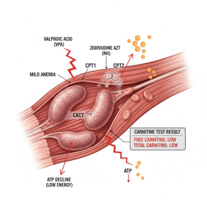 – مهار آنزیمهای اکسیداسیون چربی و مصرف بیش از حد کارنیتین برای متابولیسم دارو