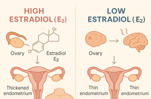 • استرادیول پایین اغلب نشانه یائسگی، نارسایی تخمدان یا اختلالات هیپوفیز است.