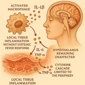 با این حال، در برخی شرایط، التهاب ناشی از IL‑۱β بدون همراهی با تب دیده میشود؛ پدیدهای که موجب بروز اختلالات مزمن و خاموش در بدن میگردد.