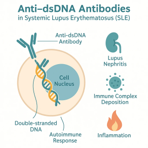 Anti‑dsDNA آنتیبادیای است که به DNA دو رشتهای در هسته سلولها حمله میکند. وجود این آنتیبادی نشانه فعال شدن نابجای سیستم ایمنی علیه بافتهای بدن است.
