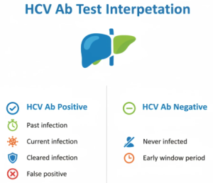 مثبت شدن HCV Ab یعنی بدن فرد در مقطعی با ویروس هپاتیت C تماس داشته است.