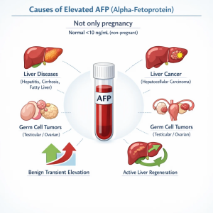 در افراد غیر باردار، شایعترین علت افزایش AFP مربوط به اختلالات کبدی است، از جمله: