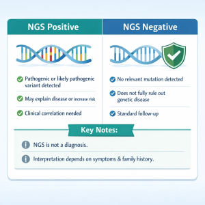 خیر، به این معنی است که هیچ واریانت بیماریزایی در ژنهایی که مورد بررسی قرار گرفتهاند (پنل ژنی آزمایش شما) یافت نشده است. NGS یک اسکن جامع است، اما محدود به تکنولوژی و ژنهای انتخابی است و نمیتواند تمام بیماریهای ممکن را رد کند.