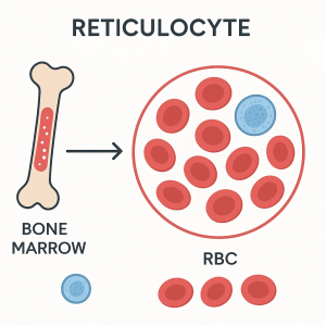 رتیکولوسیتشاخص مهمی برای تشخیص کمخونی، همولیز، خونریزی و نارسایی مغز استخوان است. بالا بودن آن معمولاً به معنای افزایش تولید RBC و پایین بودن آن نشانه کاهش عملکرد مغز استخوان است.